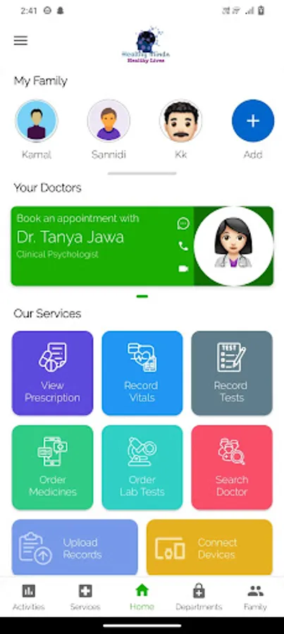 Welcome to Healthy Minds Healthy Lives app. Video-consult, chat, connect in emergencies, book appointments and access everything about your health. Use your registered number to log inside.