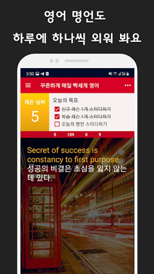 It provides strong motivation, direct English translation, systematic review, English grammar and vocabulary, so you can study English consistently every day.
