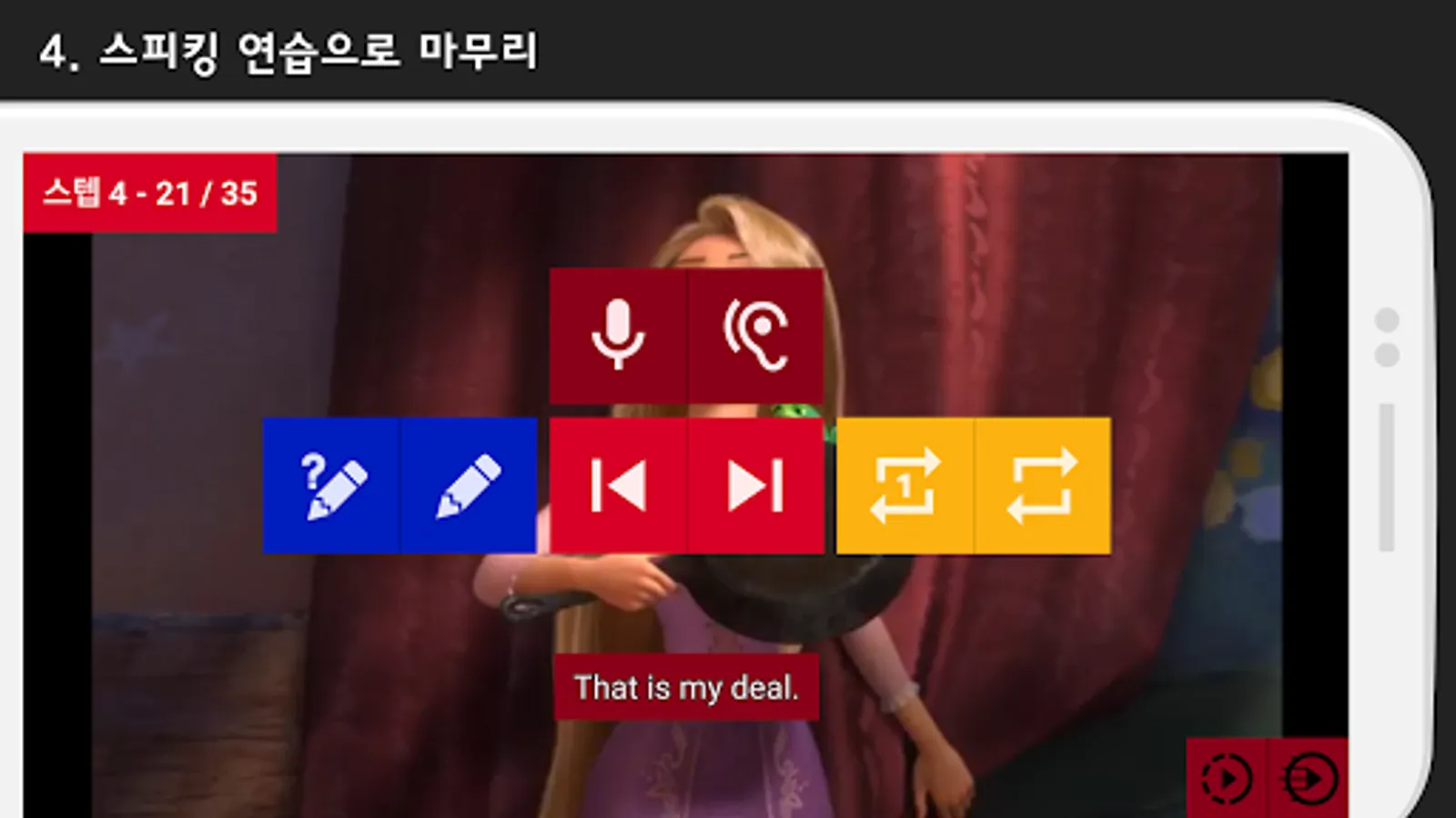 - Step 4 (Speaking Practice): After recording a sentence, compare it with the original to study the correct English pronunciation and linking