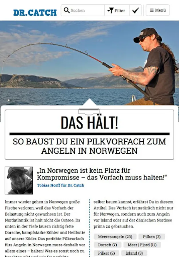 Dr. Catch provides valuable tips for beginners and old hands. From very simple basics for fishing to genuine professional knowledge and more. Founder of Dr. Tobias Catch are Norff and Holger Bente, both known for their many years of service for the fishing magazine Rute & Rolle. Will assist them by graphic Bastian Gierth and numerous well-known authors from the fishing industry, which reveal their knowledge here.
