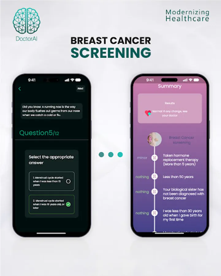DoctorAI has made available a series of free screening tools to help you to early detect risks of having deadly diseases like breast cancer even if you don’t show symptoms yet. They will assist you in seeking help before it’s too late.