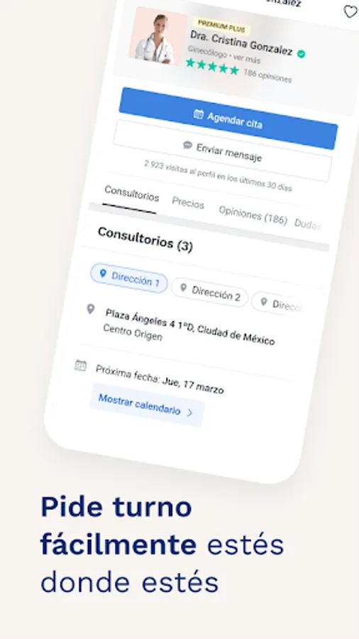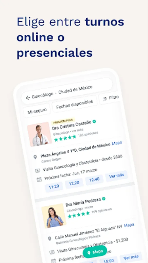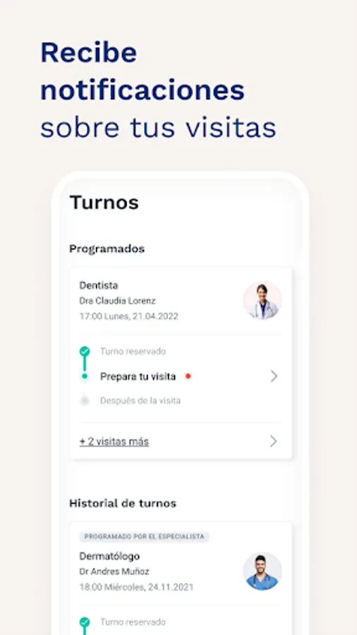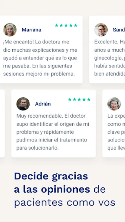 By downloading our app you have access to over 110,000 specialists across the country to book medical appointments quickly and easily directly from your mobile phone. You can filter your searches by specialty, city, zip code, treatments, social or prepaid work (OSDE, OSECAC, OSPJN, OBSBA, etc.) and even search directly on the map.
