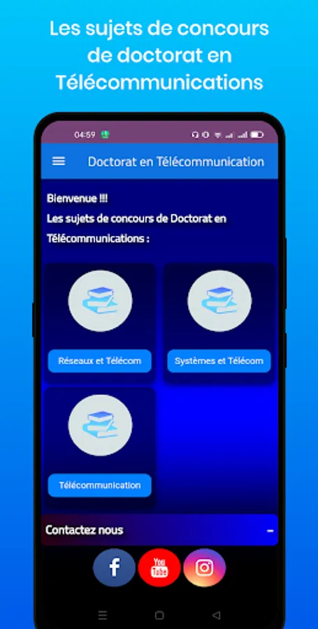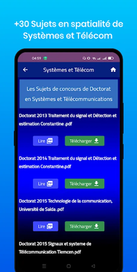 It is an educational application, Contains the subjects of doctoral competitions from 2013 until 2022.
