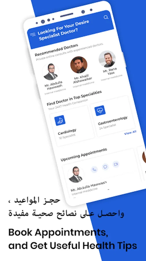 دكتوري هو التطبيق الذي سيمكن المرضى من الاتصال بالأطباء وأخصائيي الرعاية الصحية عبر الإنترنت في تمام الراحة من المنزل دون زحام المرور أو طوابير طويلة أو حتى الإحراج. من خلال دكتوري ، يمكنك أن تطلب استشارة الرعاية الصحية من خلال إرسال الرسائل النصية أو المكالمات الهاتفية أو مكالمة الفيديو. يمكنك أيضًا مشاركة الصور والملفات وكل أنواع المعلومات مع طبيبك في خصوصية تامة. هناك متخصصون في العديد من المجالات الطبية التي يمكنك الاتصال بهم بسهولة.