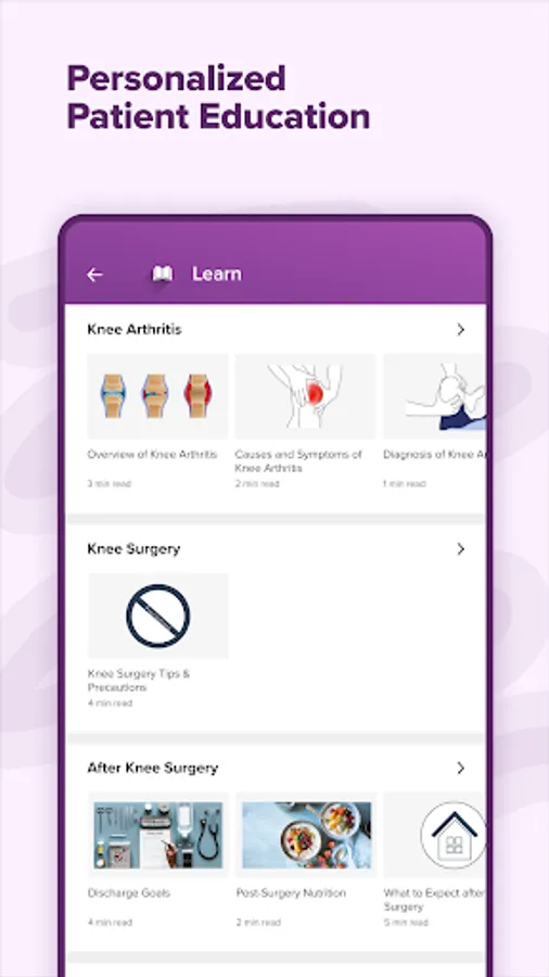 • Personalized Patient Education - bite-sized articles, specific to your condition, treatment, preparation, procedures, and recovering at home.