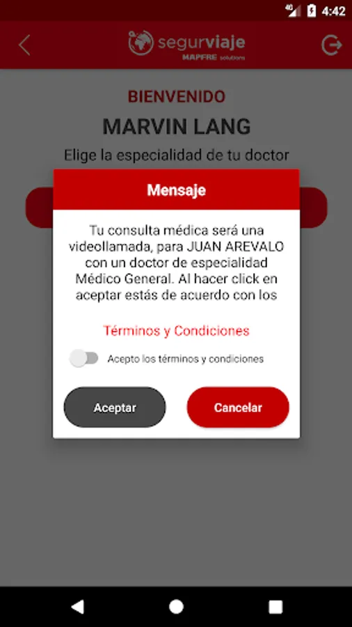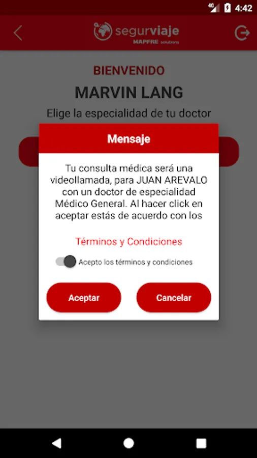 SEGURVIAJE ESV allows users (patients), have a medical appointment via video call or chat, where you can share photos with Doctor Your laboratory and other results. After consulting the user receives the prescription and the doctor's recommendations in your email.
