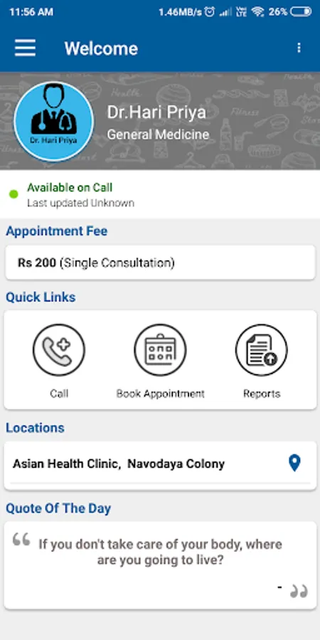 To better manage her patient visits, Dr. Hari Priya has come up with a new mobile App. Using this App patients can book appointments, upload patient records and get timely reminders on health.