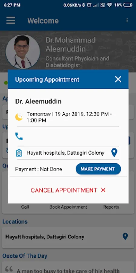 Dr Mohd Aleemuddin established Hayatt Hospitals as One Stop Solution for all healthcare needs. It has state of art facilities with highly experienced doctors and patient friendly environment.It has expanded to an umbrella of services such as General physician, Diabetology, Dermatology, Cardiology, Neurology, ENT, Nephrology Pulmonology, Physiotherapy, and Nutrition etc