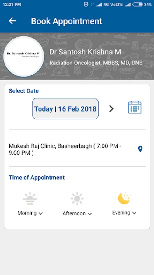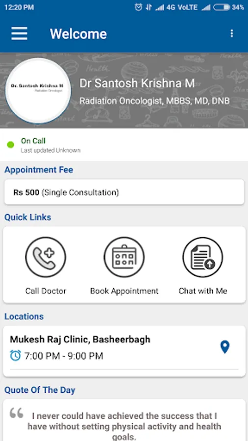 Welcome to my app. Using this application you will be able to book appointments, get health reminders and chat with me about your reports.