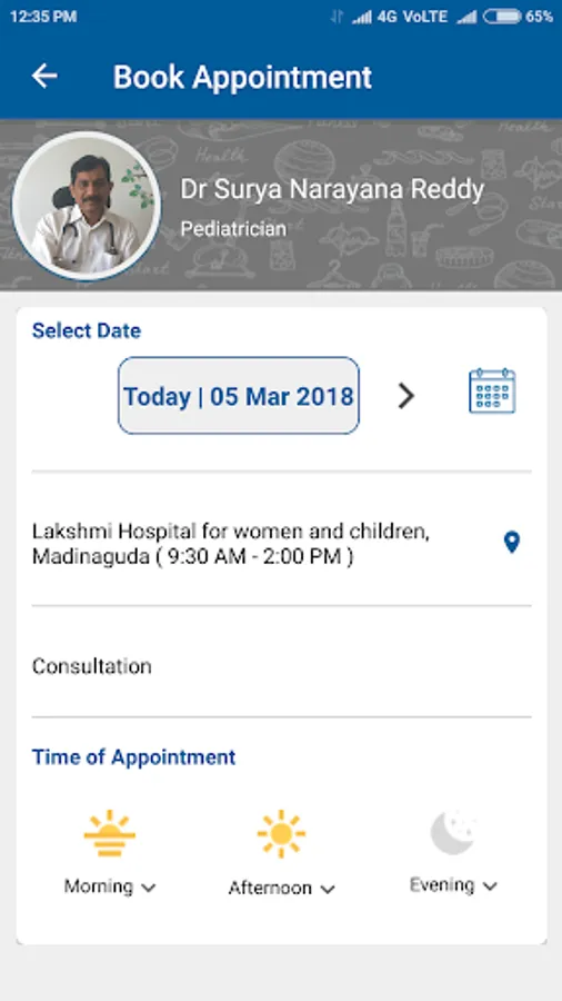 1 - Book and track the upcoming appointments with Dr. Surya Narayana Reddy