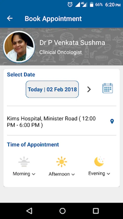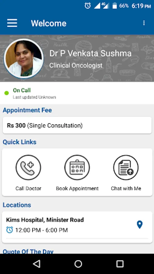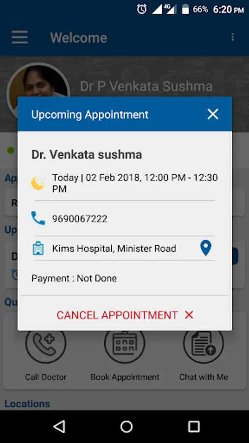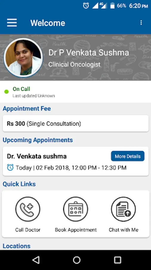 Welcome to my app. Using this application you will be able to book appointments, get health reminders and chat with me about your reports.