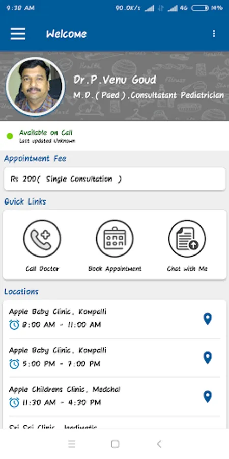 Dr. P. Venu Goud is a Pediatrician in Kompally, Hyderabad and has an experience of 9 years in this field. Dr. P. Venu Goud practices at Apple Baby Clinic (Kompally @9701679773) in Kompally, Hyderabad and Sri Sai Clinic (Jeedimetla Village @9989395029) in Jeedimetla, Hyderabad. He completed MD - Pediatrics from MANIPAL HOSPITAL, BANGALORE in 2009.