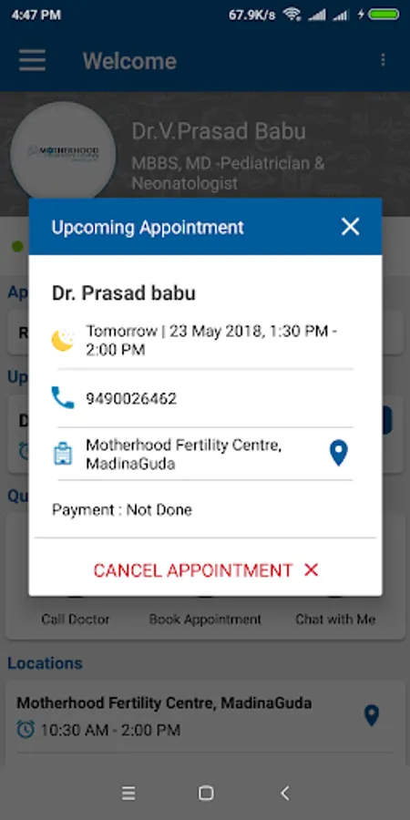 This app is specifically for Dr. V. Prasad Babu (Motherhood Fertility Clinic, Madinaguda) patients who can: