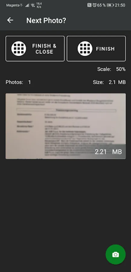 To ensure the best possible data protection and confidentiality, the captured photos are not stored in the Google or smartphone manufacturer's photo gallery, only in the application itself. If, for example, a company's own SMTP server or a Windows share is used as the scanning target, the photos remain in a trustworthy environment all the time.