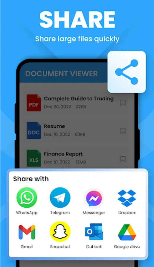 All files are no longer hidden in the mobile. The all document reader and viewer will help you find file list easily. It also provides for read all files, deleting, renaming, and sharing files. See file information like file path, file size, last modified date, etc.