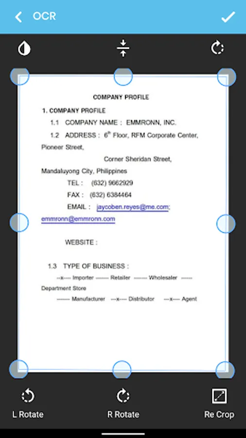 OCR (optical character recognition) feature recognizes texts in document images and extract them from images for later searching, editing or sharing.