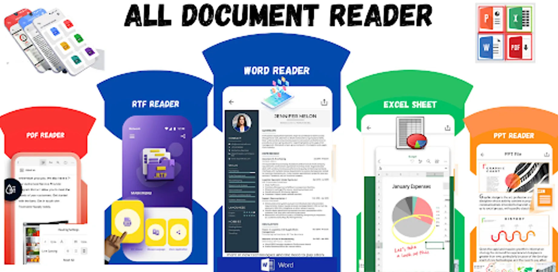 β All Document Reader and Viewer-Free Office suite for Word, PDF, Excel, is an all-in-one office suite integrates Word docs, PDF, Excel spreadsheets, PowerPoint slides. Access various All Document Reader and Viewer functions through mobile devices, such as scan PDF files, edit slides, convert spreadsheets, or view documents anytime, anywhere.