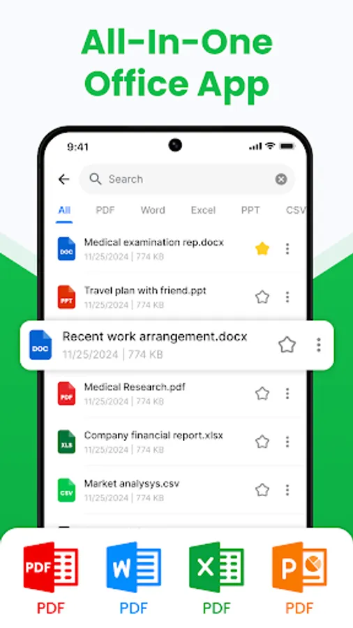 Try All Document Reader! This all-in-one file reader, viewer, opener, and manager application is a compatible with all Office files, helping you easily process all files like as a PDF, Word (DOC, DOCX), Excel (XLS, XLXS), PowerPoint (PPT), TXT, ZIP, RAR, CHM, and more. Whether you need to view a PDF File, open a Word document, access an Excel spreadsheet, or unzip a ZIP file, All Document Reader has you covered. You can read anywhere and anytime β even offline.