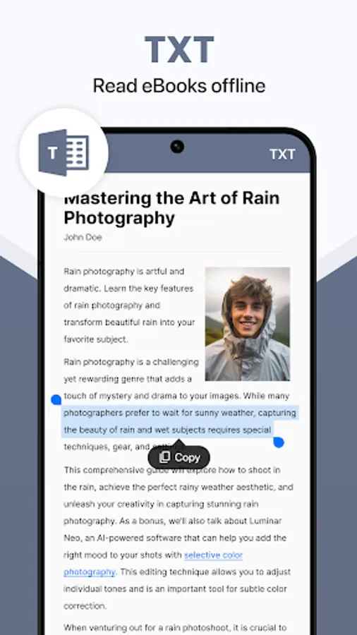 - Read TXT files easily wherever you are using this simple Document Viewer.