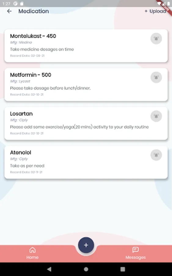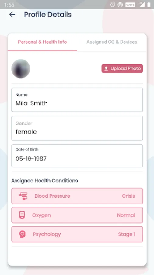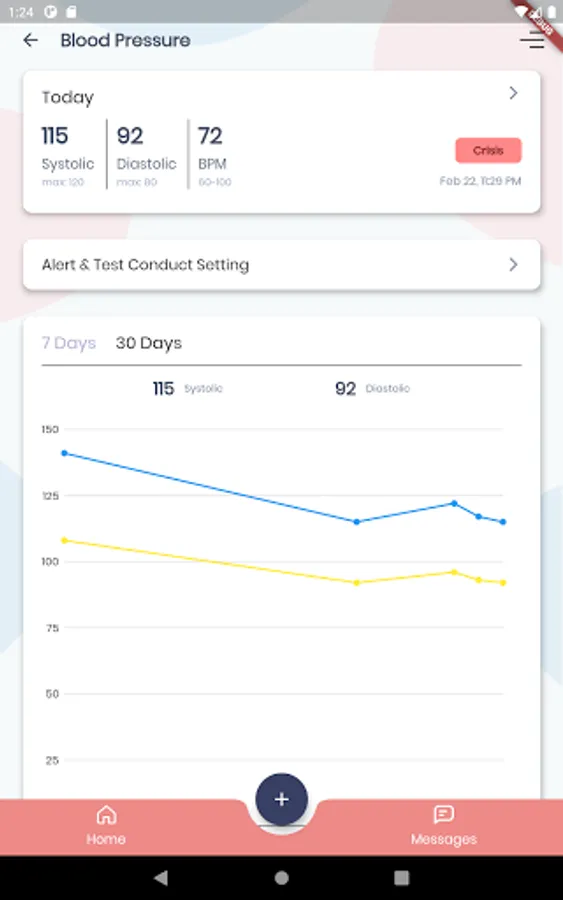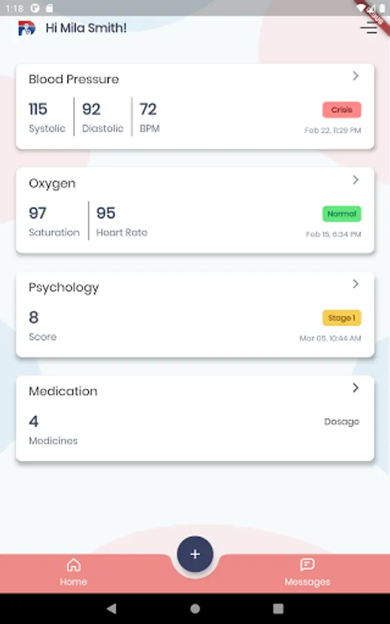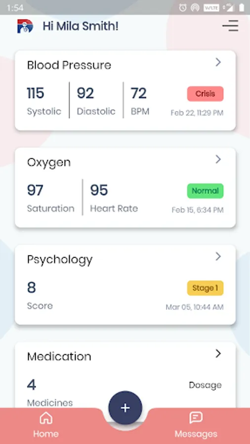 Messaging with caregivers about how the patient feels together with readings from the remote monitoring devices are reviewed within the app.