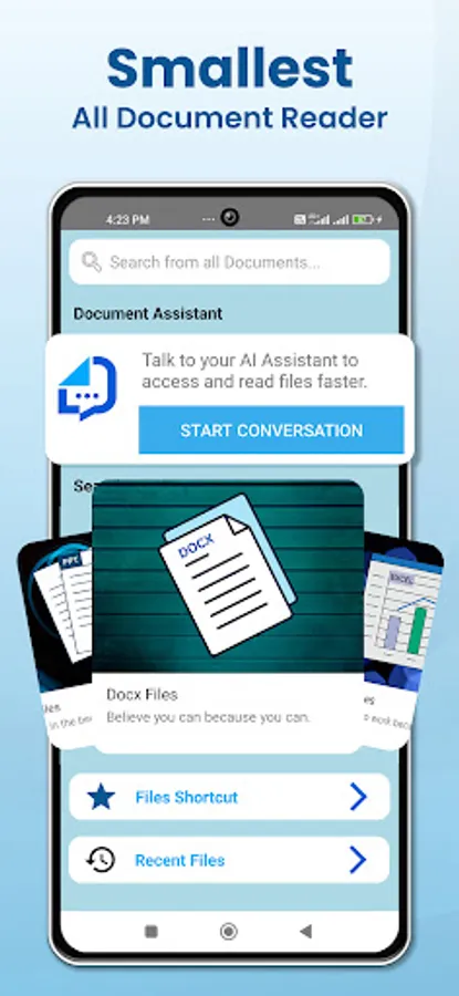 This Docx Reader Word Office app is the smallest all in one All Document Reader and Viewer app with Document Assistant powered by AI.