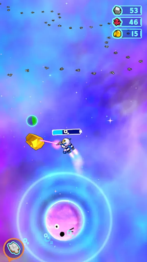 - Use your trusty jetpack to move around the vastness of the cosmos!