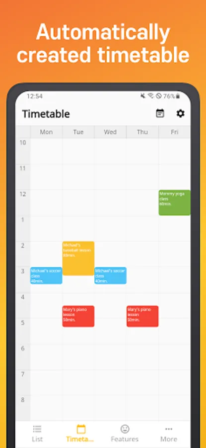 ■ A weekly timetable is created for easy viewing, so you can grasp the schedule at a glance.