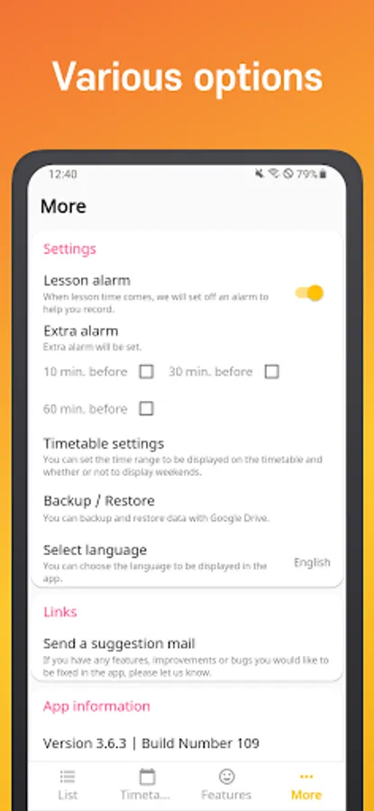 ■ Alarm function - App will alarm you and you will not forget about recording the lesson.