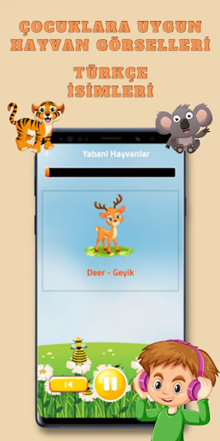 - Wild animals category includes the original sounds and Turkish names of 30 different animals.