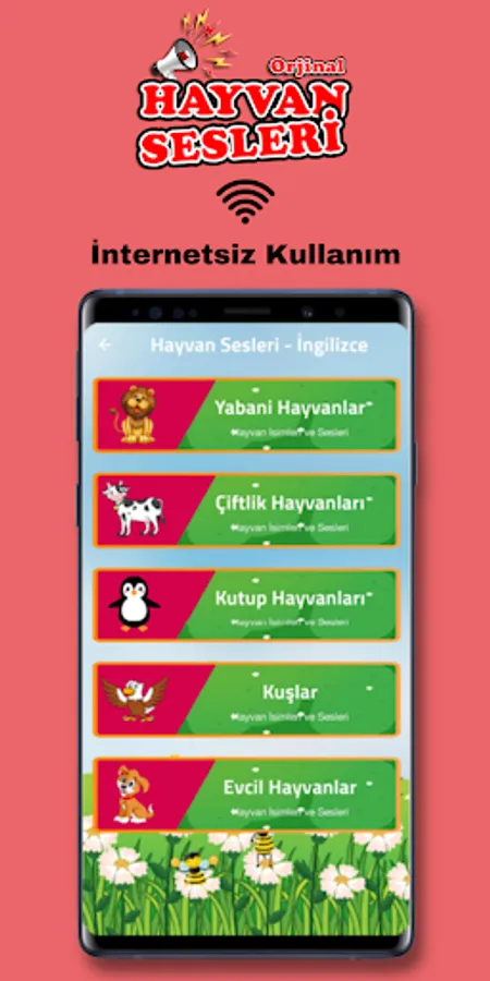 - Birds category includes the original sounds and Turkish names of 30 different animals.
