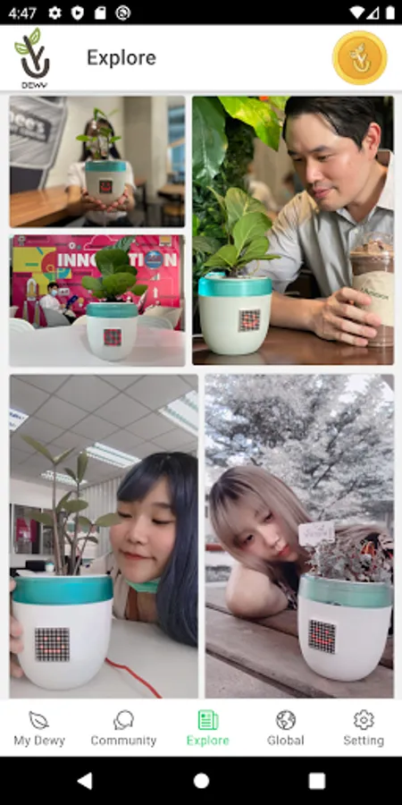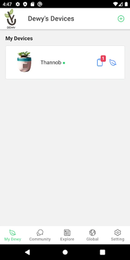 Dewy app that works with the smiley plant pot, Dewy sister.