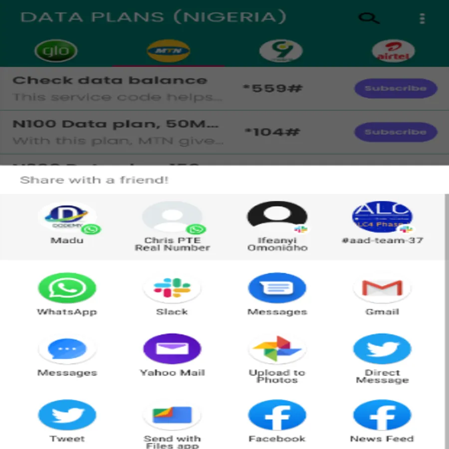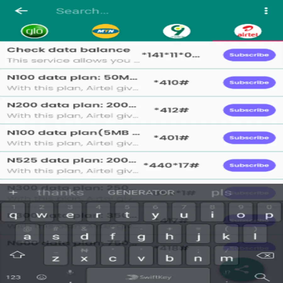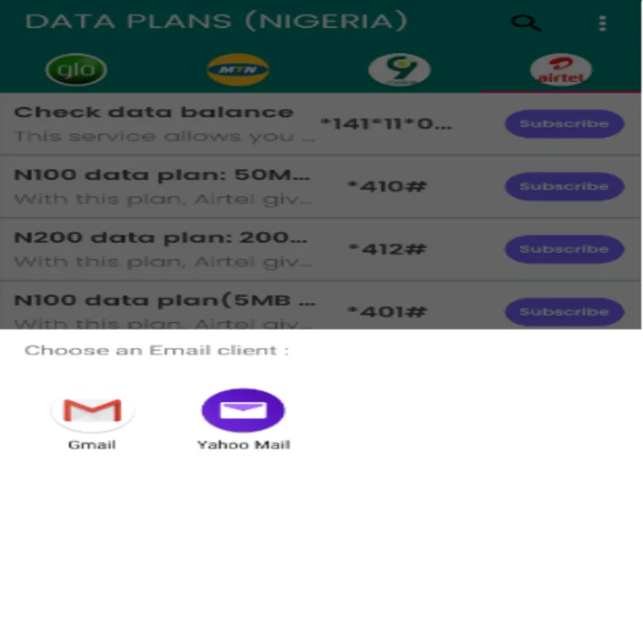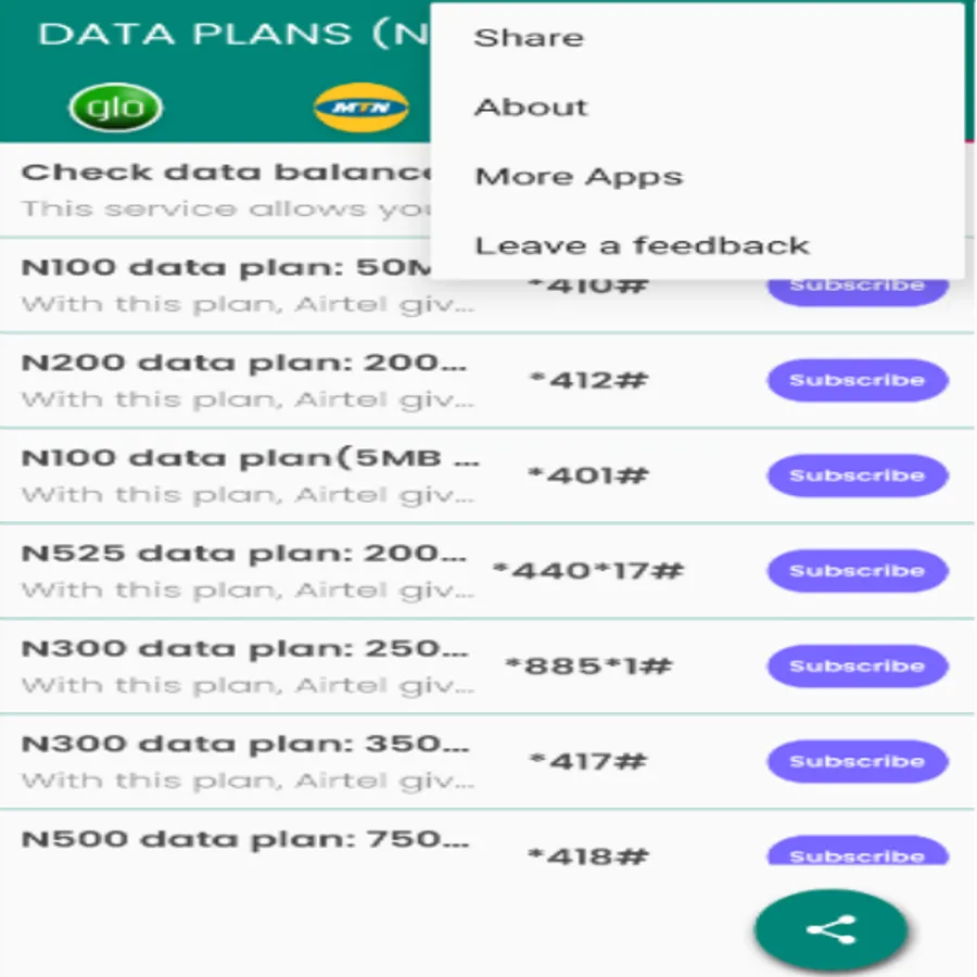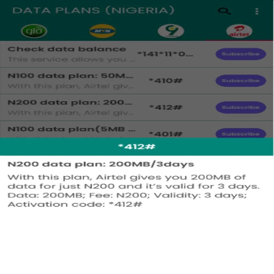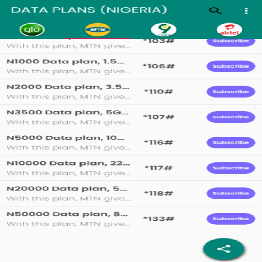 DATA USSD CODES (NIGERIA) is an Android mobile app which provides you with network feature codes for data subscription. The app arranges the codes in a list backed with an explanation. They ease data subscription without visiting them. To use the app, identity your network provider on the list or search same in the search box on the toolbar and click on the dial button to perform your subscription for you.