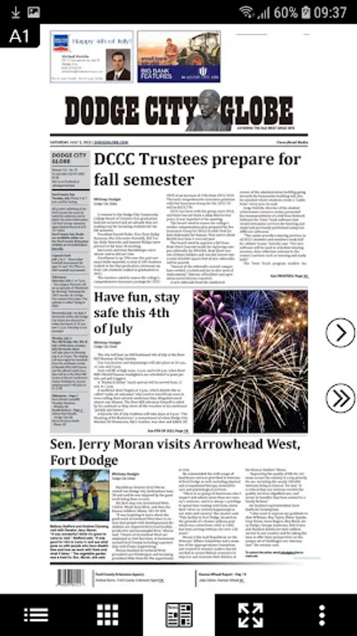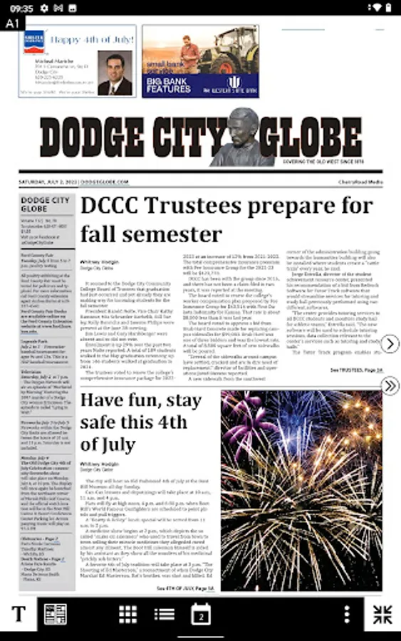 The Dodge City Daily Globe ‘eEdition’ is an exact digital replica of the printed newspaper. Subscribers can flip through the pages, read stories, photos and view ads just they appeared in print.