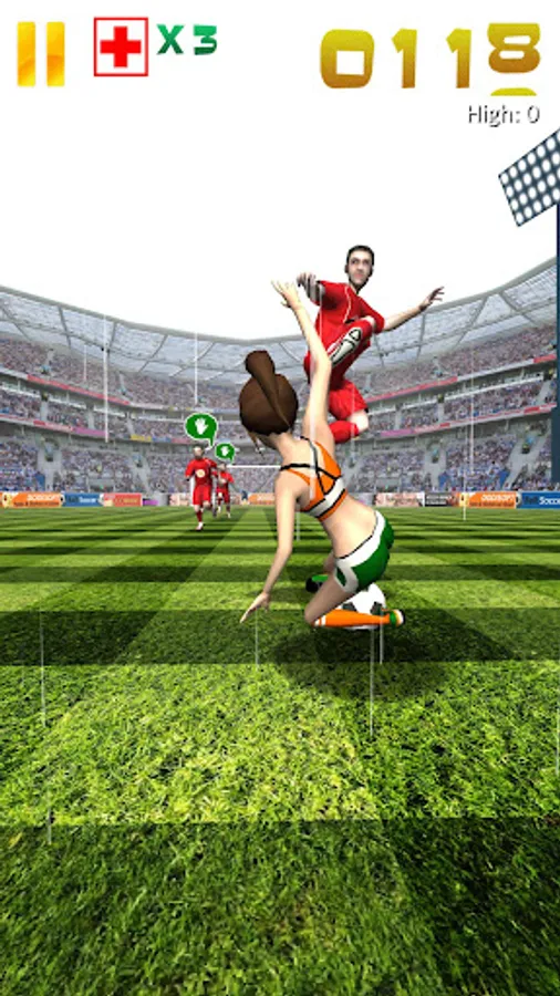 • Realistic football rules and actions (Dribbling, feint and fakes, 360 turning, slide off, jump, shoot and foul)