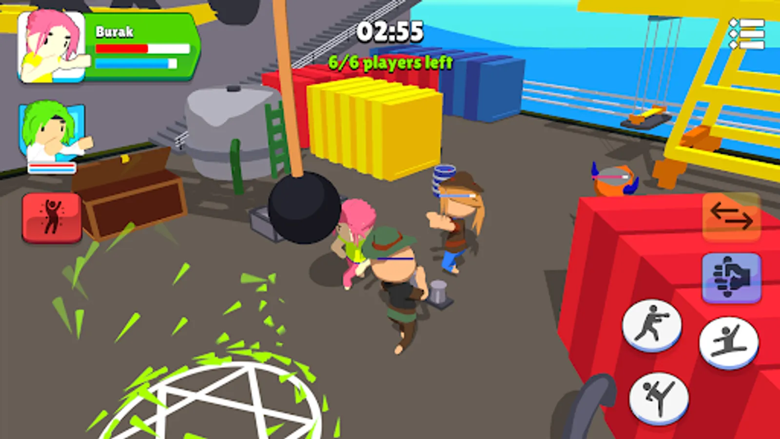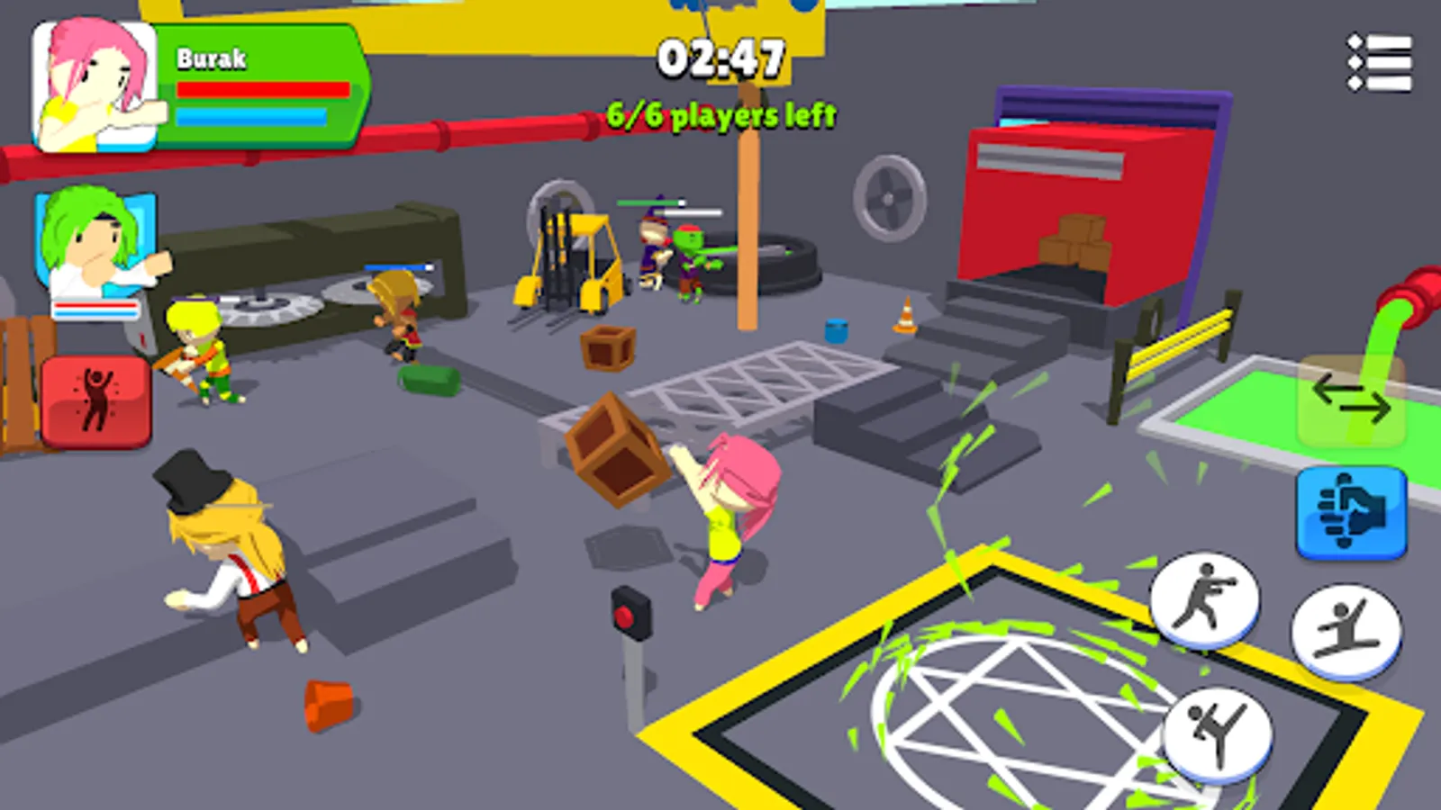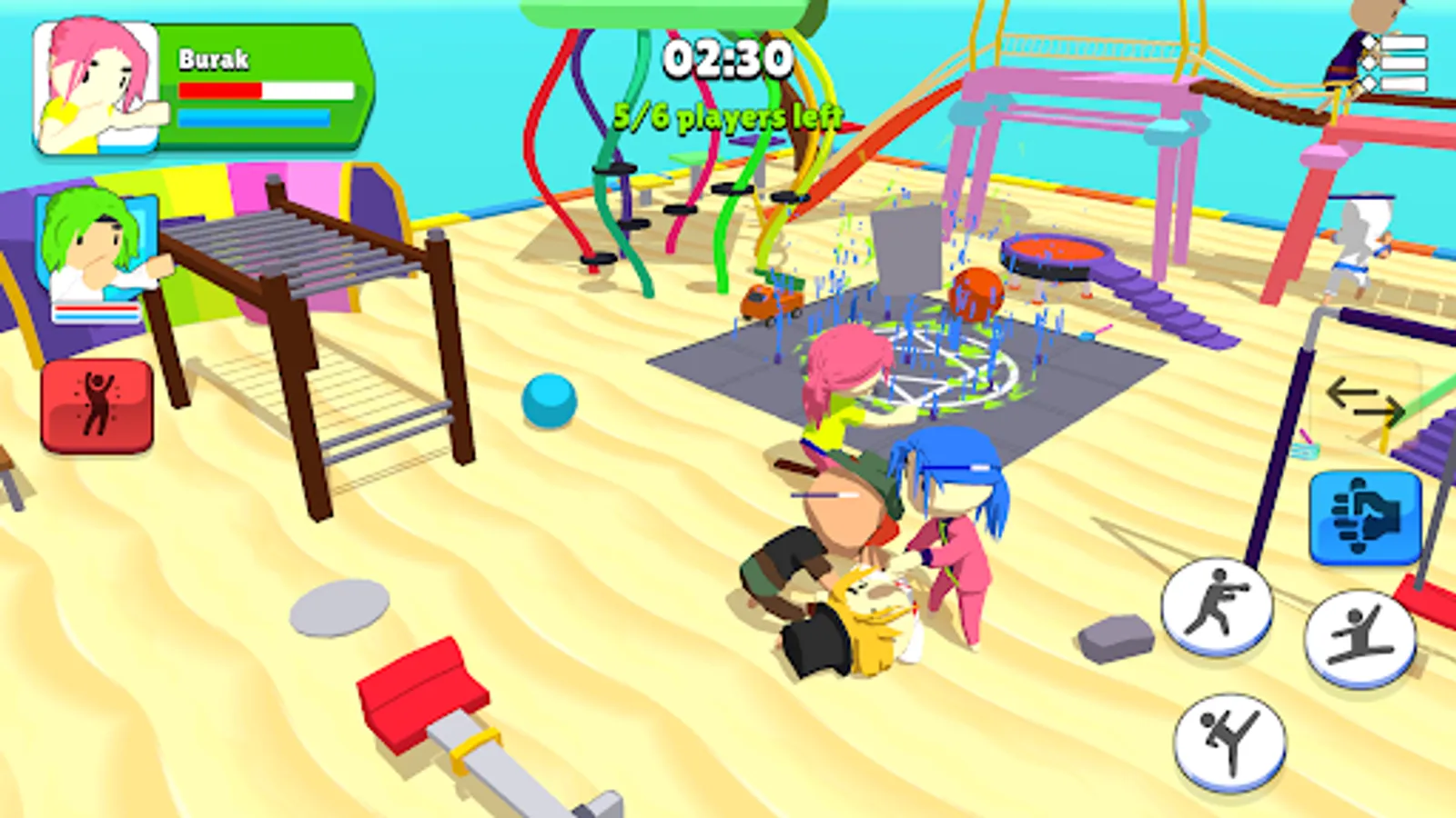 This is a multiplayer game and there are six teams in the game at the same time. Each team has two wrestlers and wrestlers can switch anytime during the play.
