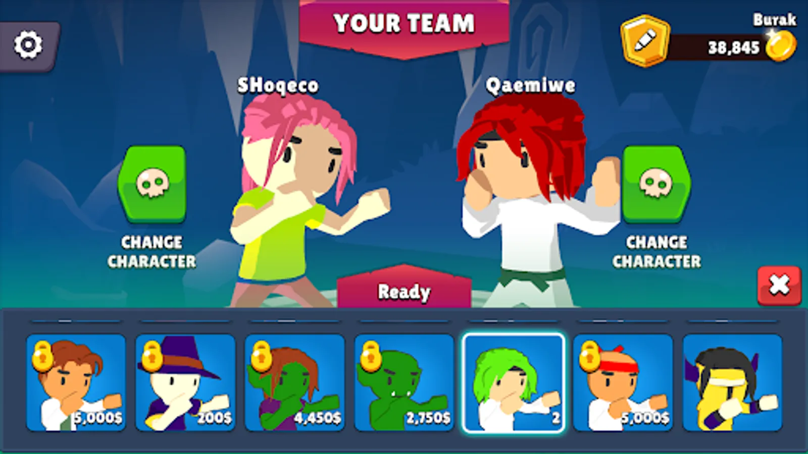 There are nine unique level arenas and fifty one wrestlers. Each wrestler has own power and style. You can also alter your fighting technique from the store by changing punch and kick styles.