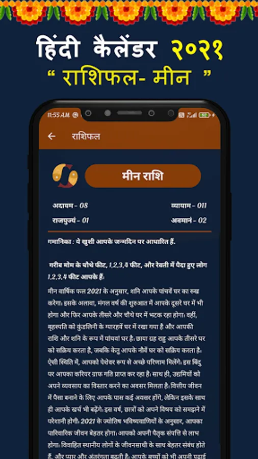 This app is completely free and is available in offline mode. Users can view complete details of both Daily and Monthly of the year 2022.In this 2022 panchang calendar you have Rasifal of complete year for 2022 year in Hindi.