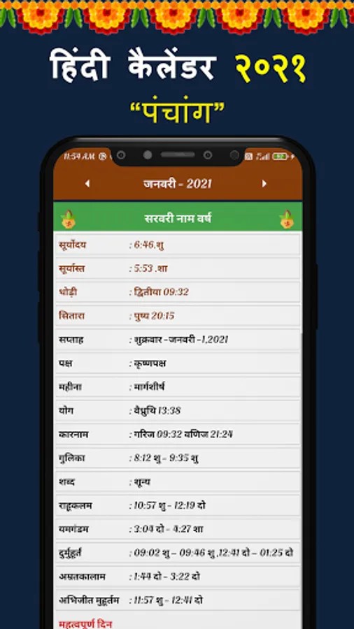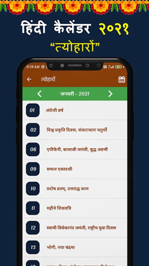 Hindi Calendar 2022 with all festivals app allows you to view Subha Muhurat, Vrath, Panchang 2022, and all holiday information of the year 2022 in Hindi.