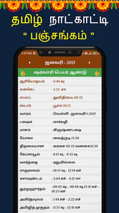 Tamil calendar 2022 with Tamil Panchangam 2022 provides accurate details at your finger tips.