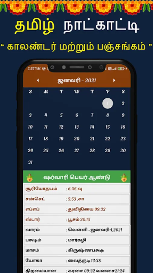 Tamil calendar 2022 with Tamil Panchangam 2022 Features :