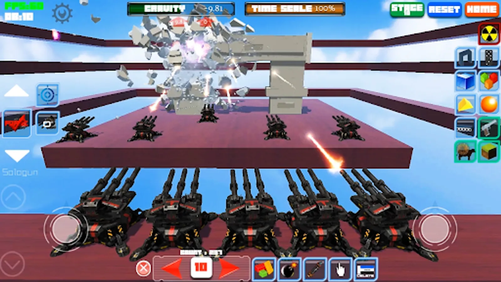 By using the time scale bar and gravity bar, You can control the time and gravity.