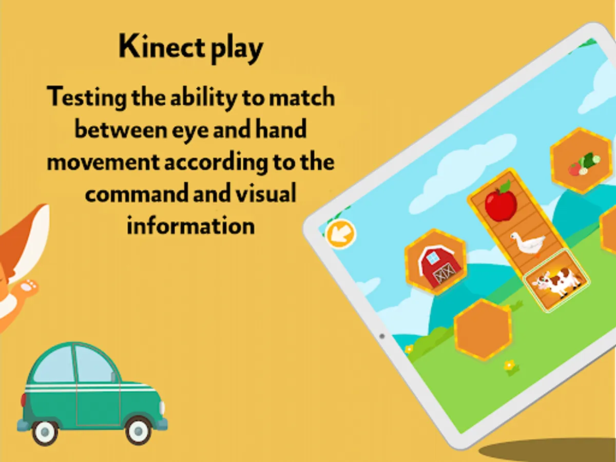 Training sensory and visual perception skills. The platform games will test the ability to match eye and hand movement according to the visual information presented in accordance with the rules imposed by the game while playing. The games contain hundreds of Arabic words accompanied by pictures and sounds, aiming to help parents develop language skills. This is achieved in a manner that is consistent with the cognitive and physical skills needed to reach the required level for each person according to his/her age.