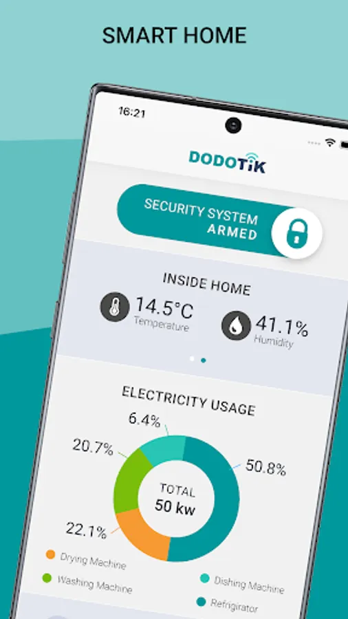 DODOTiK is a smart home app that allows users to control their home appliances real-time from anywhere. In addition, it allows users to monitor power consumption and make a comparison between all home appliances at the same time. Moreover, it provides users with a smart security system with real-time alerts when it activates. The user can control RGB led strap as an individual or in groups.