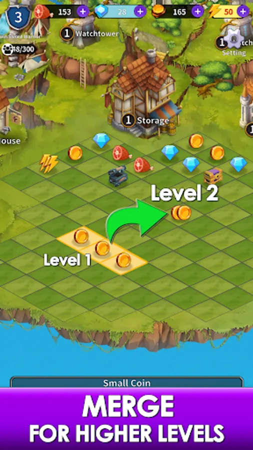 Merging the resources generated in the fortress transforms them into higher value resources. It's up to you to decide whether to merge resources or use them to strengthen your fortress and heroes.