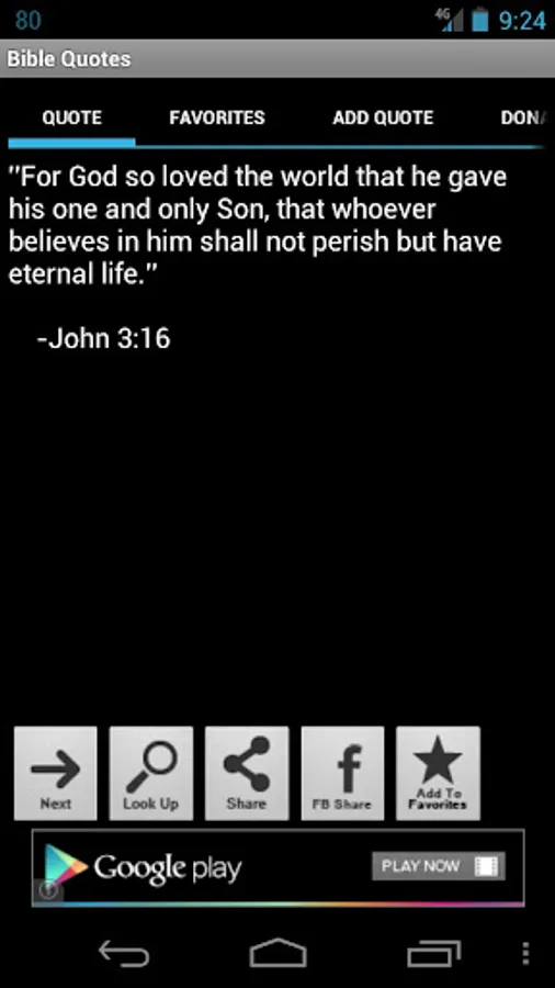 This is a donate version of our Bible Quotes App. With your donation of $0.99 we can improve and expand on the features in our apps.