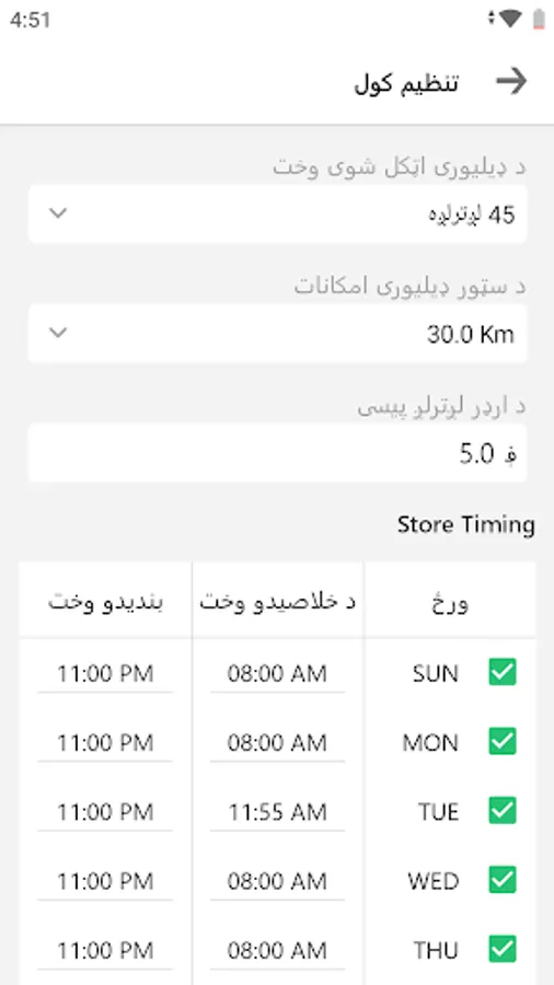 Manage restaurant settings like restaurant time, packaging charge, delivery radius, minimum order amount, Estimated delivery time, and more