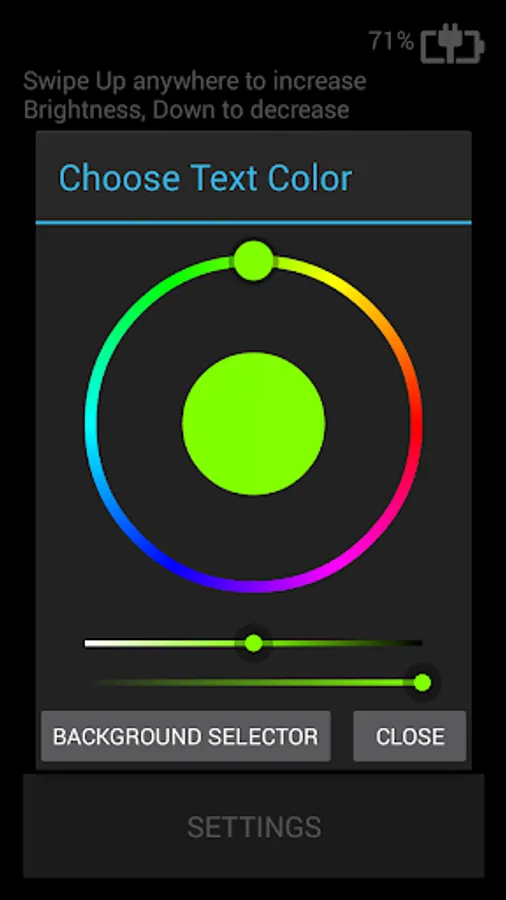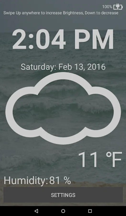 - swipe screen to change device brightness (swipe up to increase, down to decrease)