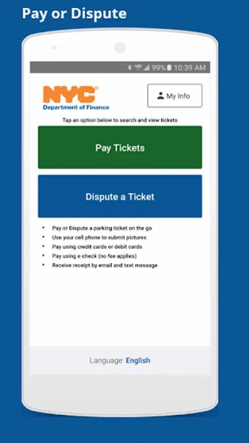 · Dispute a ticket immediately using your device’s camera to upload evidence.