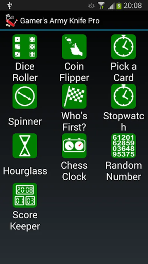 This app is the Swiss Army Knife of board and party games. It includes the following tools: