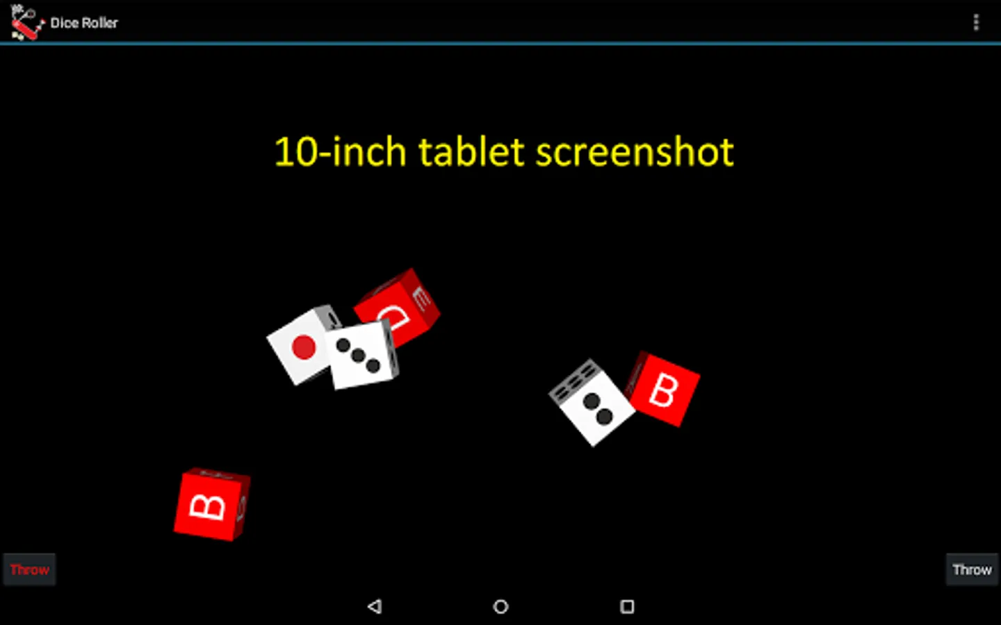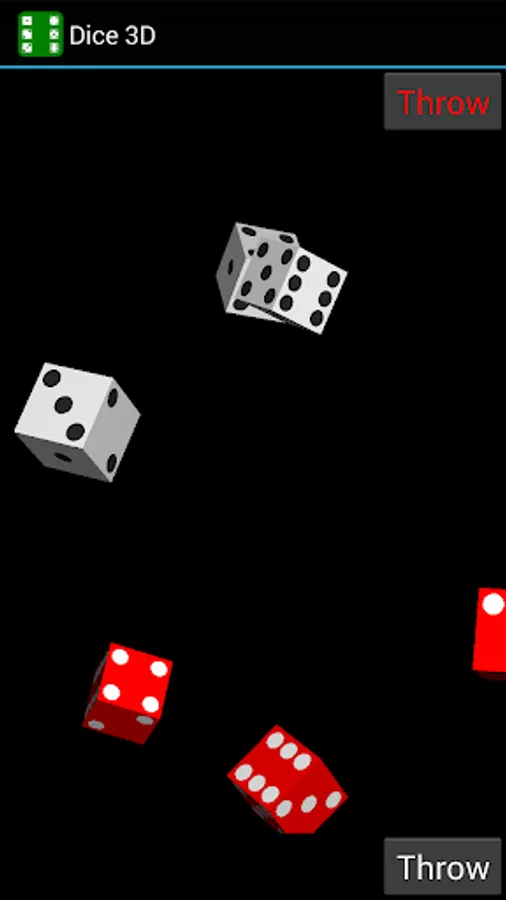 a) Dice roller. A customizable 3D dice roller with eastern (large, red and black pips) and western style (small, black pips) facets. There are many options regarding the number and the color of dice (e.g. two red and two white dice, six white dice, risk-style 3+2 dice, etc)